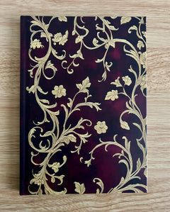 Elegant, magical, and richly detailed, Gilded Blossoms is a romantasy-inspired collage junk journal designed for readers and writers who love lush aesthetics and enchanted heirloom vibes. With a deep velvet-red backdrop adorned with swirling golden vines and delicate flowers, this A5 hardcover journal feels like something pulled straight from a royal library in a fantasy world.