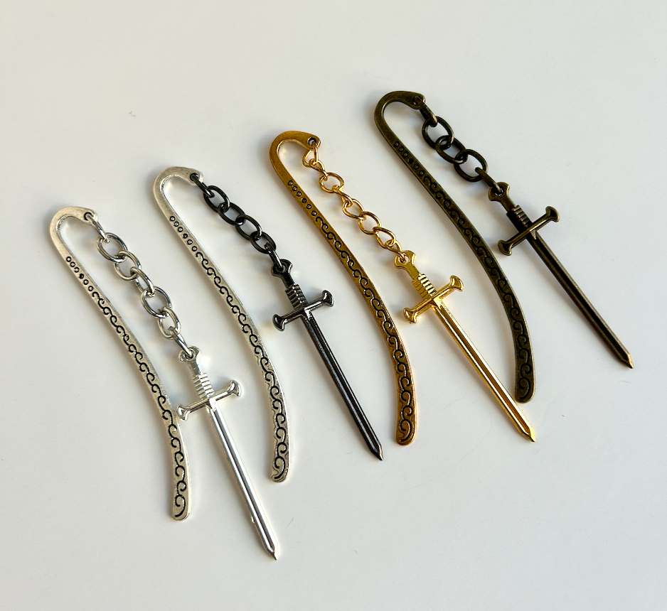 Mark your place like a warrior with the Bladewarden charm bookmark—a bold metallic sword tucked between the pages of your favorite romantasy or epic fantasy read. Choose your blade: