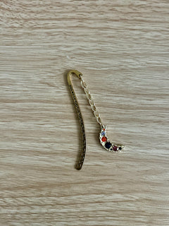 A sparkling crescent moon with colorful gems—a magical bookmark for fantasy readers and moon-obsessed book lovers.