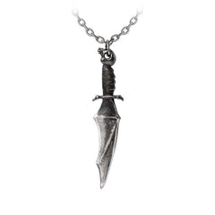 This striking pendant features a bat-wing inspired blade and a skull-accented pommel, echoing tales of the undead and those who hunt them. Bold yet refined, this antiqued English pewter piece is perfect for vampire slayers, dark romantics, and nightwalkers alike.