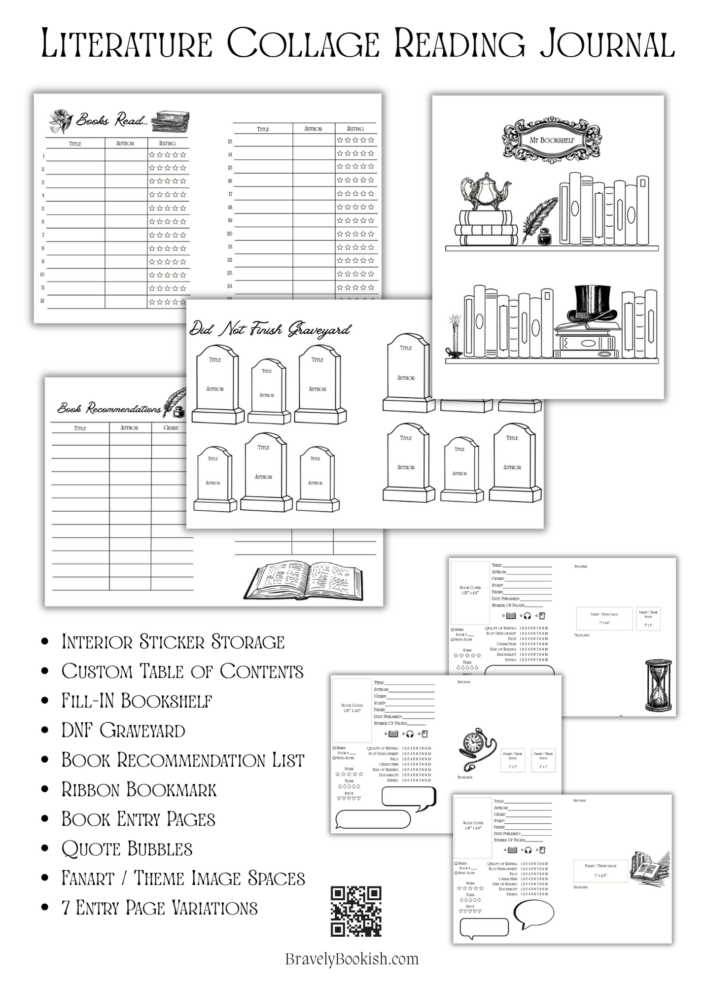 25 creative entry pages for documenting book titles, notes, reflections, and ratings