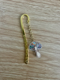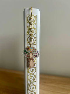 The Forest Mushroom charm bookmark brings a touch of woodland magic to your reading routine. Featuring a gold-toned hook bookmark with an engraved floral pattern, this design is finished with a detailed mushroom charm decorated in soft, earthy colors inspired by forest floors and hidden gardens.