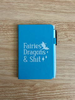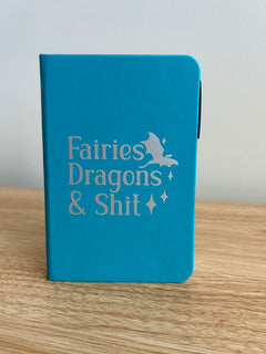 "Fairies, Dragons & Shit" Hand-Embellished College Ruled Faux Leather Mini Journal