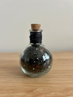 Round glass potion bottle with cork