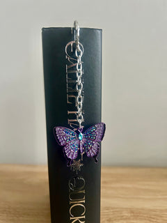 Delicate and quietly magical, the Little Osha bookmark features a silver-tone metal base paired with a luminous purple butterfly charm that shimmers with iridescent details. A tiny snowflake accent hangs beneath the butterfly, adding a soft, wintry touch that feels gentle, observant, and full of quiet strength.