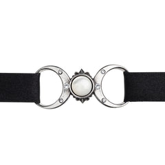 Adjustable via a pewter slide fastener, the choker fits comfortably up to 21" (53 cm). A perfect adornment for modern witches, moon worshippers, and lovers of mystical symbolism.