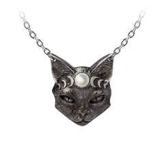 Handmade in England from fine blackened pewter, this necklace carries the weight of craft and story — a piece for those who walk beneath the phases of the moon with their familiar spirit at their side.