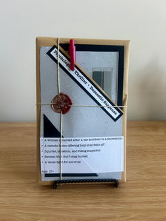 A mystery book wrapped, decorated, and sealed with wax.
