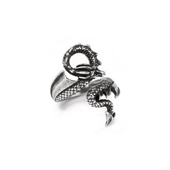 Forged in shadow and dragonfire, the Dragonsbane Ring coils around your finger like a living curse. This serpentine creature — a miniature dragon wrought from fine English pewter — clings as though guarding its chosen master. Its polished scales gleam with ancient power, whispering secrets of fire, flight, and forbidden magic.