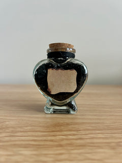 Step into the shadows with Black Widow, a potion bottle crafted for lovers of dark fantasy, gothic aesthetics, and dangerous magic. Filled with shimmering obsidian-black crushed glass, this heart-shaped vial looks like a fragment of midnight—glittering, mysterious, and undeniably powerful.