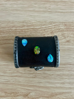Hidden inside a tiny wooden chest, a young amethyst dragon kept its first hoard—four glittering potion vials, shards of crystal, and a single spellbook it guarded fiercely.