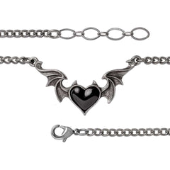 • Adjustable bracelet featuring a winged, horned black enamel heart