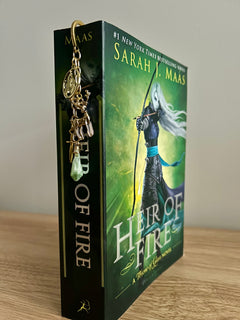 Inspired by Aelin Galathynius from Throne of Glass, this handcrafted bookmark embodies fire, defiance, and an unbreakable will. Featuring a flame emblem to represent her power, a stag charm symbolizing Terrasen, and a raw green crystal accent echoing growth, resilience, and legacy, every detail is chosen with intention. Finished with a gold-toned floral-etched bookmark base, this piece is made for readers who love fierce heroines, hard-won victories, and stories that burn bright even in darkness. A striking companion for fantasy reads and a meaningful gift for any Throne of Glass fan who knows what it means to never yield.